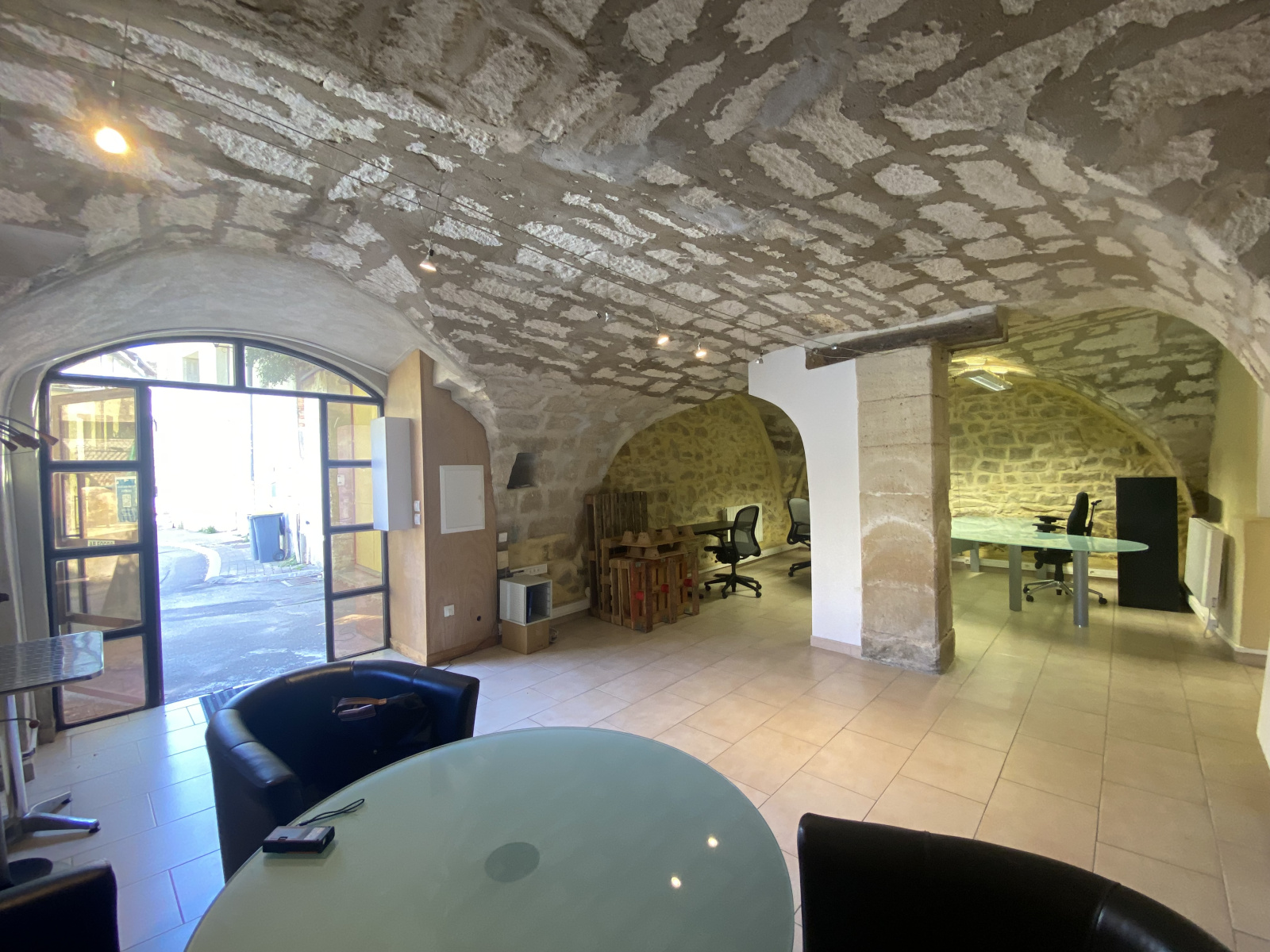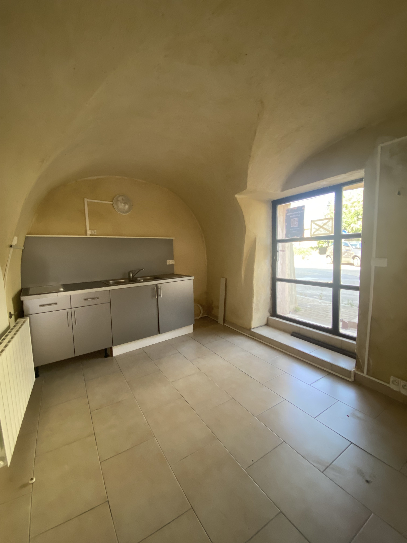 pièce voutée, plusieurs fenêtres, 2 accès à la rue, coin cuisine