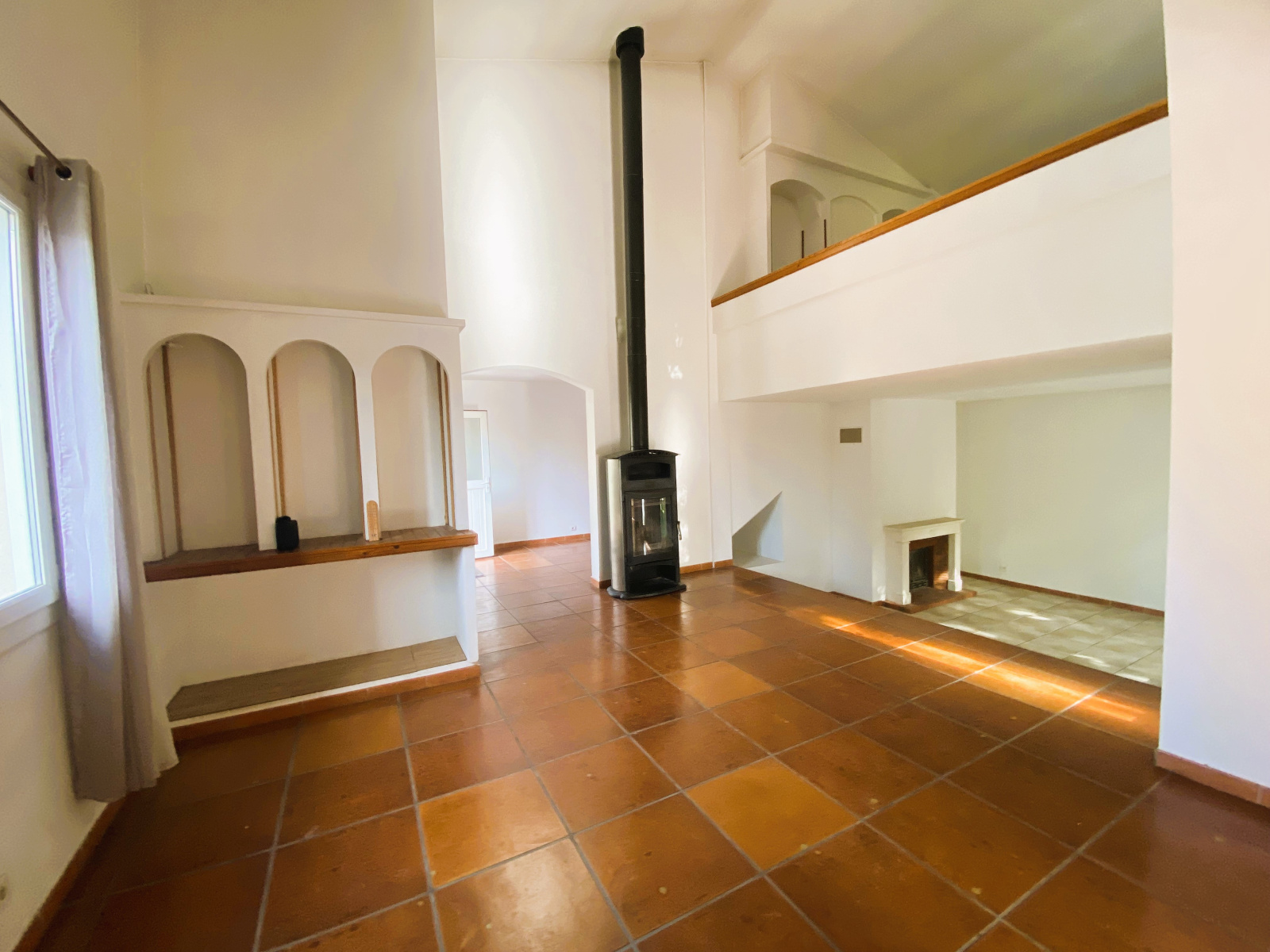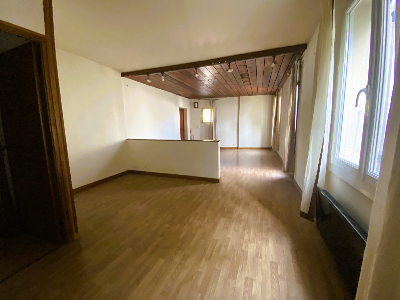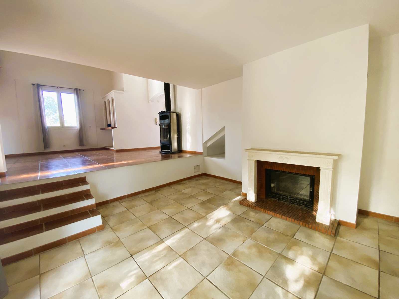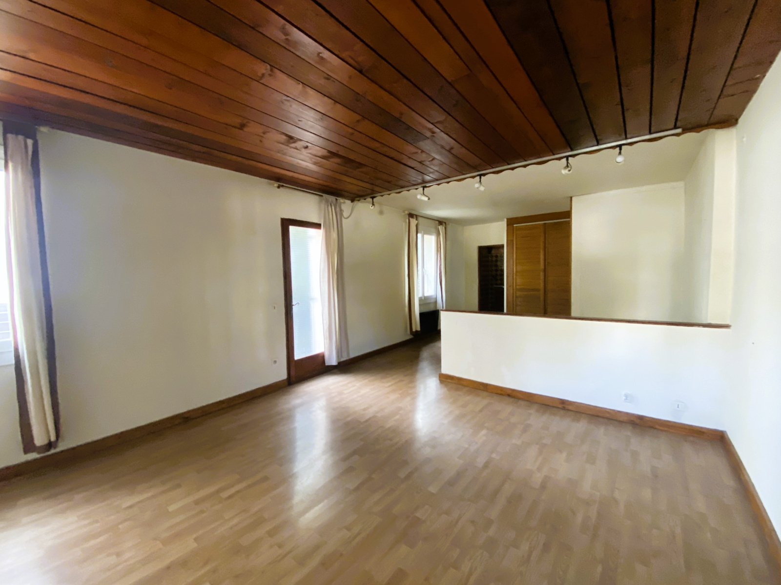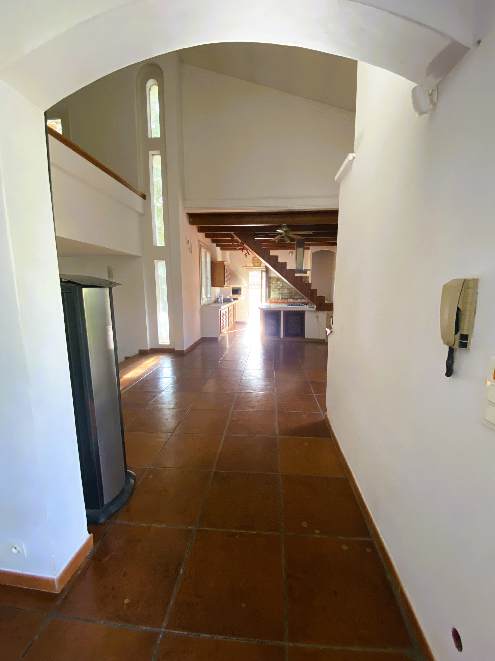 En entrant, vous serez accueilli par un hall spacieux qui mène à un salon, séjour cuisine avec un plafond cathédrale , créant ainsi une atmosphère lumineuse et conviviale. Les fenetres offrent une vue sur le jardin ajoutant une touche de serennité à l'espace de vie.