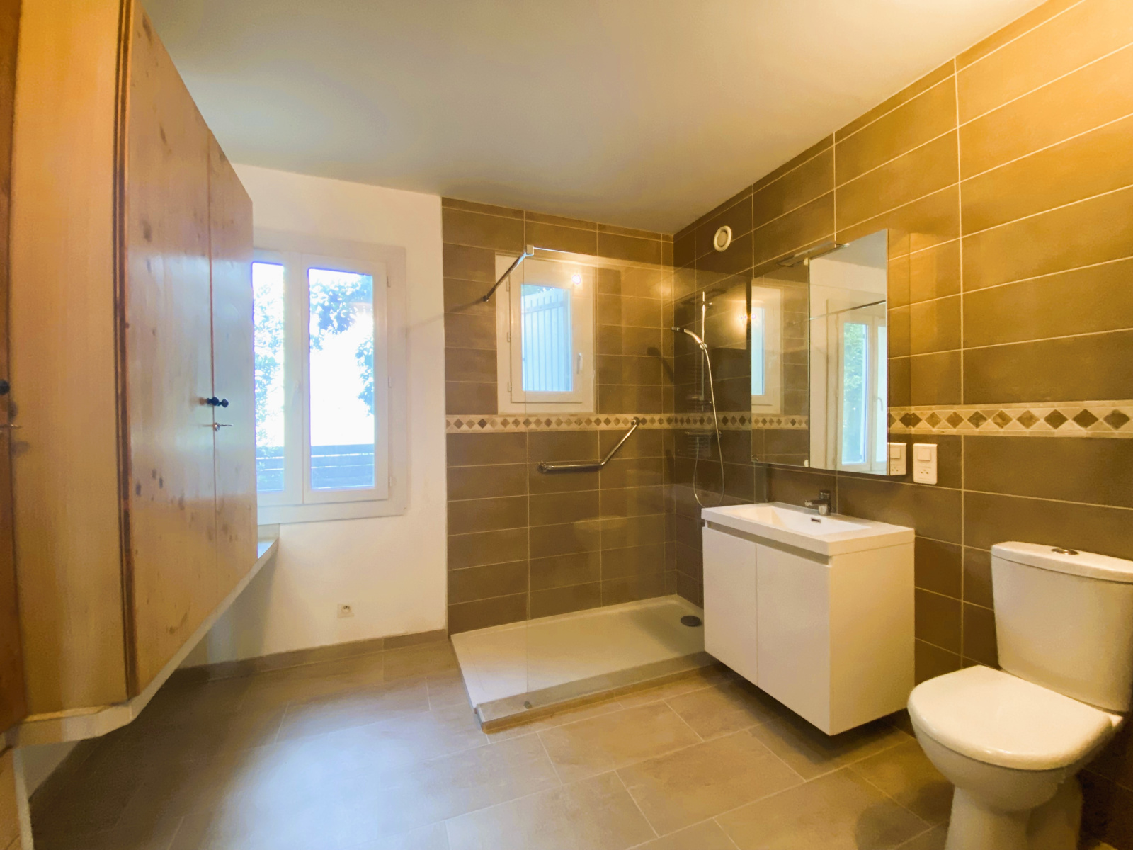 Au rez de chausée, vous trouverez une chambre confortable donnant accès à une terrasse, une salle d'eau moderne, un wc indépendant et une buanderie pratique. A l'étage, une salle d'eau suplémentaire, un wc indépendant, une chambre et une mezzanine offrent des espaces intimes pour les membres de la famille.