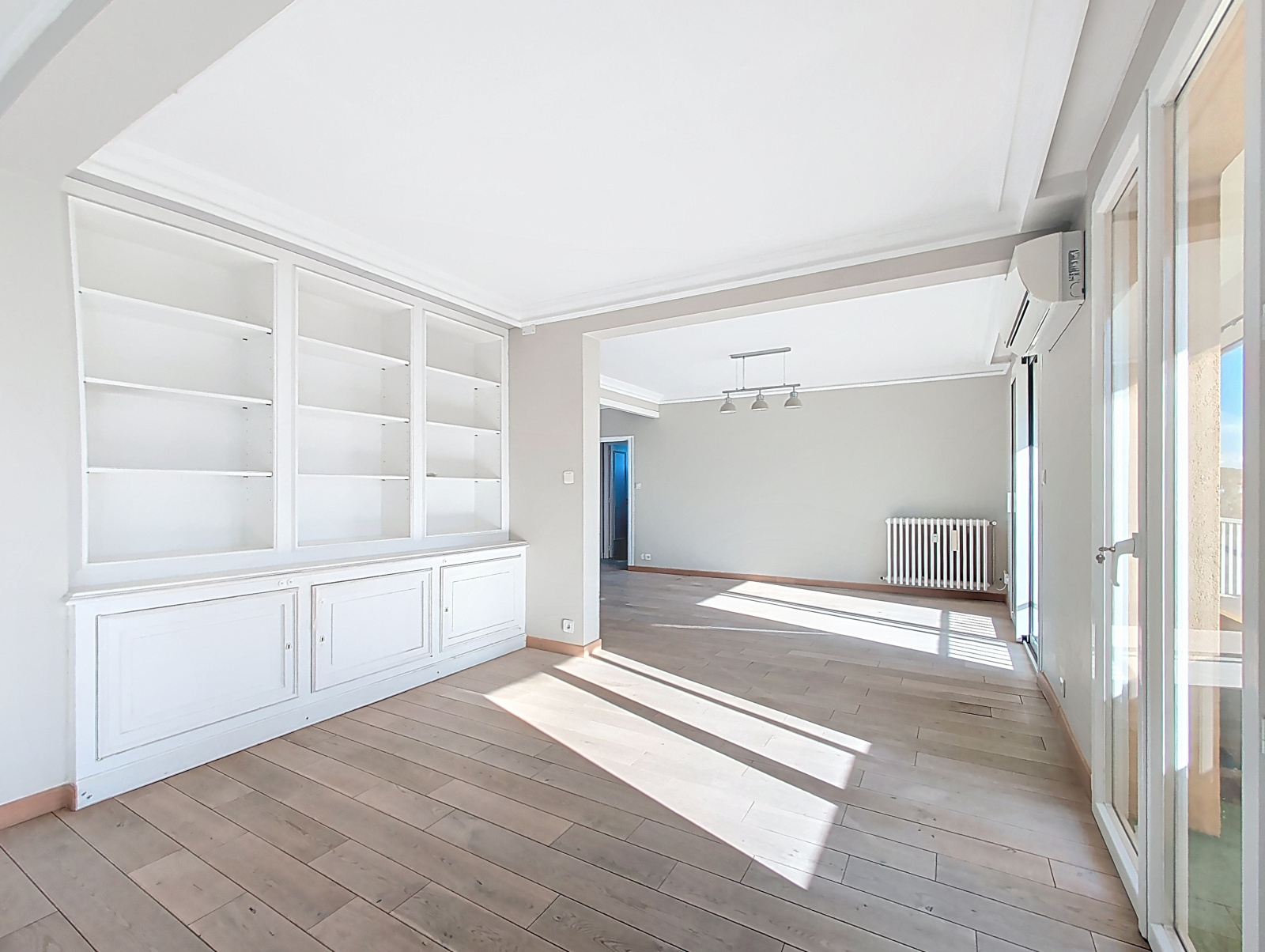 Traversant et baigné de lumière tout au long de la journée, il offre un espace de vie généreux avec un vaste séjour ouvrant sur un balcon de 11 m², idéal pour profiter d’un extérieur calme et ensoleillé. La cuisine moderne, entièrement équipée, s’intègre harmonieusement à la pièce de vie, créant un ensemble convivial et fonctionnel, parfait pour recevoir.